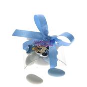 Boite à dragées buste Bébé Mickey pour baptême garçon ou naissance. Avec son joli ruban de soie personnalisé ou de satin bleu ciel, ce contenant transparent est parfait sur votre table. La boite baptême bébé Mickey est garnie de dragées amande bleue et dragées chocolat blanche. La jolie frimousse de notre Bébé Mickey fera craquer tous vos invités. Facile et rapide à monter, vous allez adorer.