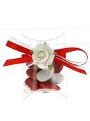 Pour une cérémonie de mariage chic, élégante, glamour et unique, déposez sur votre table notre magnifique boite dragées buste et sa rose blanche. Garni de nos délicieuses dragées amande catalane blanche et dragées chocolat 70% de cacao rouge.