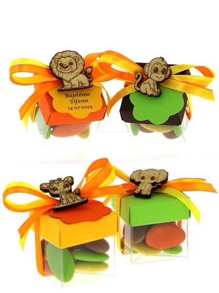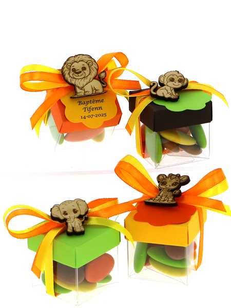 Boite dragées cube baptême thème jungle