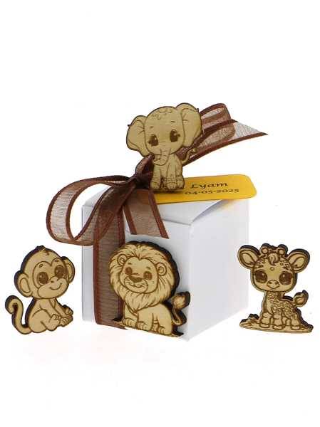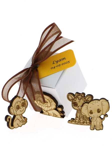Une magnifique nouveauté pour vos cérémonies sur le thème de la jungle. Cube dragées jungle blanc personnalisable au prénom de votre enfant pour un souvenir unique. Accompagnez nos contenants jungle de nos urnes, livres d'or et affiches personnalisées que vous pourrez garder en souvenirs et dans la chambre de votre petit ange.