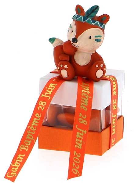 Boite Dragées Cube Renard Personnalisé - Dragées Baptême Renard