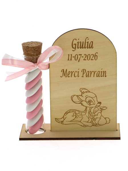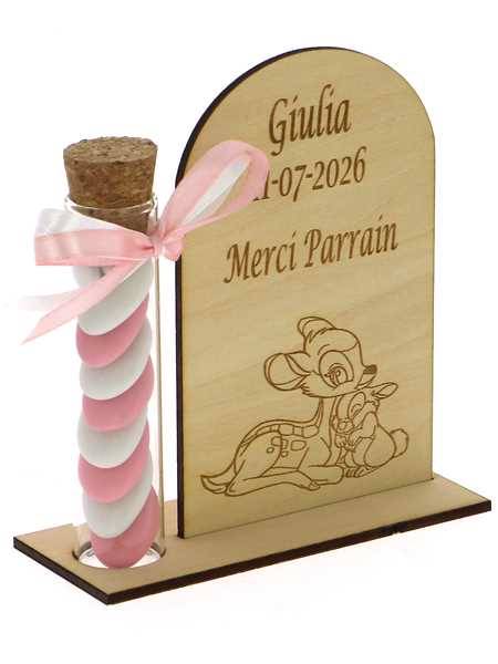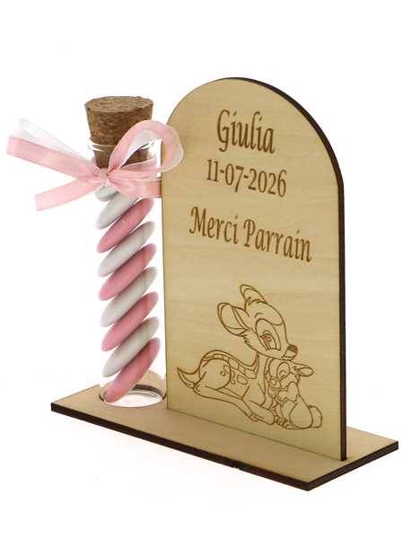 Cadeau Parrain Marraine Éprouvette Bois Bambi - Dragées Baptême Bambi