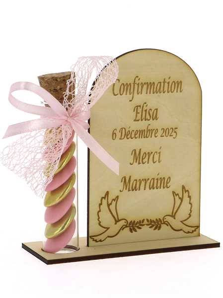 Cadeau Parrain Marraine Éprouvette Bois Personnalisé Colombe - Dragées Colombe