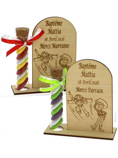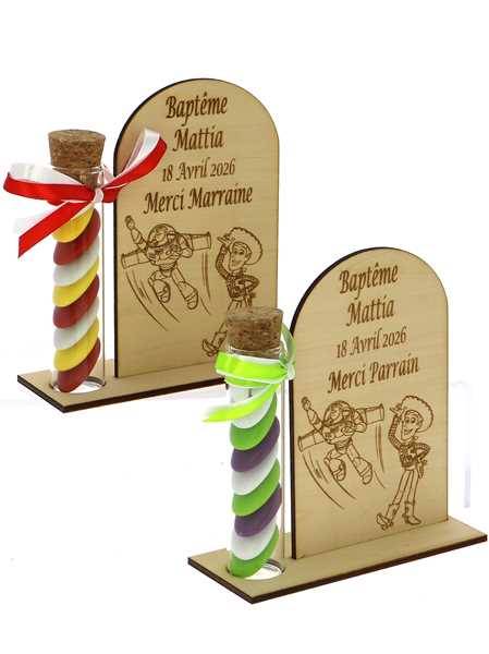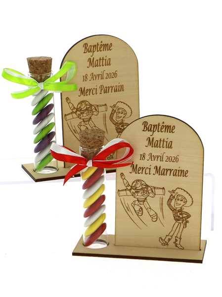Cadeau Parrain Marraine Éprouvette Bois Toy Story - Dragées Baptême Toy Story