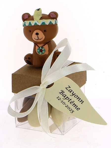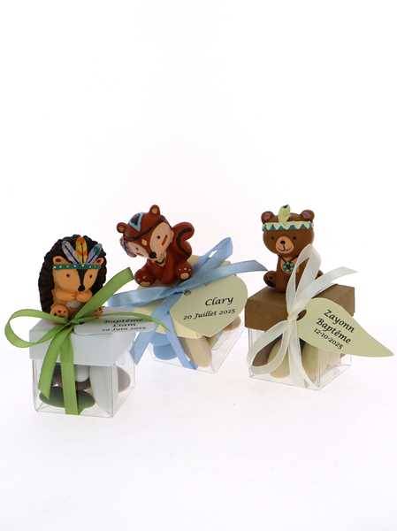 Contenant Dragées Cube Ourson Animaux - Dragées Baptême Animaux