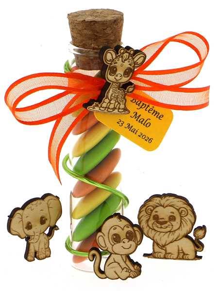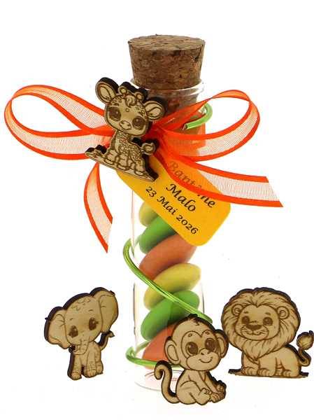 Éprouvette Dragées Baptême Jungle Personnalisée - Cadeaux Invités Animaux Jungle