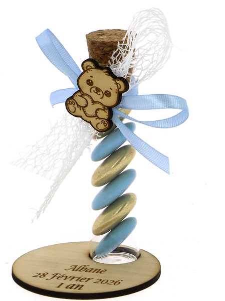 Éprouvette Dragées Baptême Ourson Bleu - Dragées Baptême Ourson
