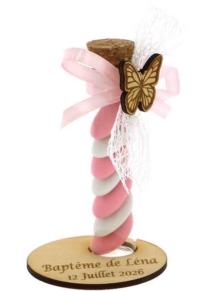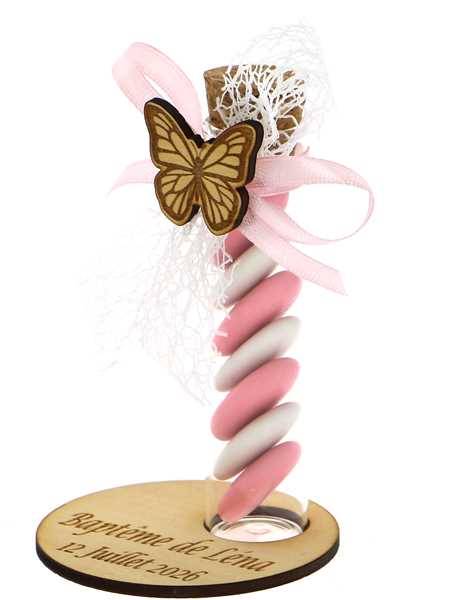 Éprouvette Dragées Baptême Papillon Socle Gravé - Dragées Baptême Papillon