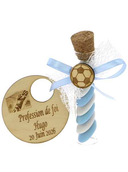 Éprouvette Dragées Communion Football Socle Bois - Dragées Football