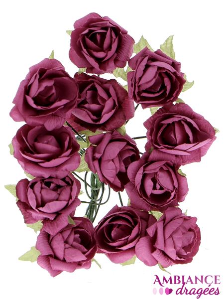 Bouquet de 12 Roses fuchsia à insérer dans un ruban ou