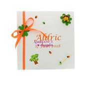 Voici un magnifique livre d'or Jungle qui s'accorde parfaitement avec notre Urne Baptême Jungle. Les couleurs sont modifiables sur demande pour qu'elles soient en accord avec votre décoration de baptême. Pensez à vos convives et offrez leurs un magnifique contenant dragées jungle qu'ils garderont en souvenir de cette belle journée.