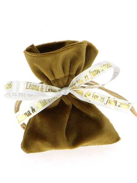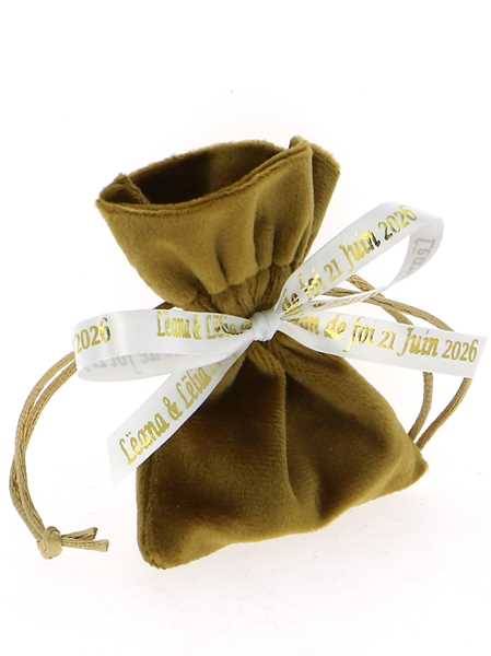 Sachet Dragées Velours Or Personnalisé - Dragées Mariage Or