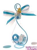 Contenant dragées baptême rapide et facile à confectionner. Plus besoin de ruban, avec cette cordelette insérée dans le tulle turquoise. Garnissez de délicieuse dragées amande et chocolat 70% de cacao, faites un nœud, une bouclette et hop votre tulle dragées cendrillon est prêt. Une nouvelle petite princesse ravie pour son baptême.